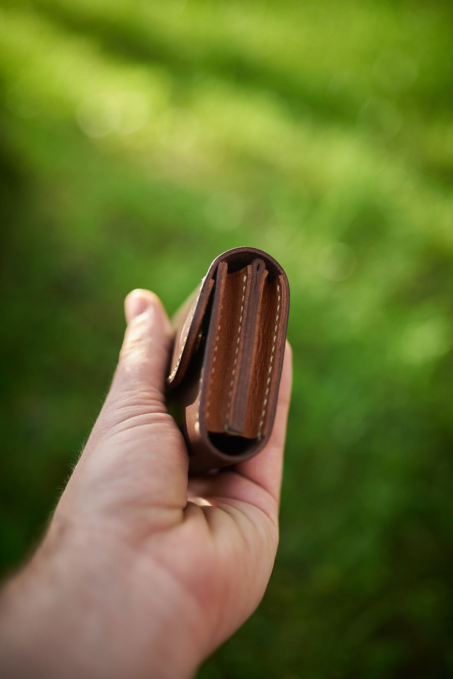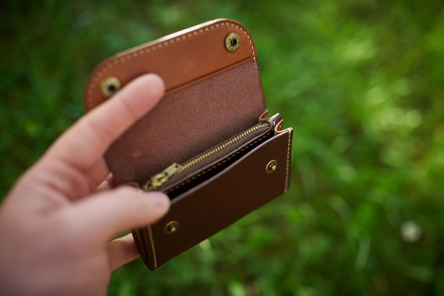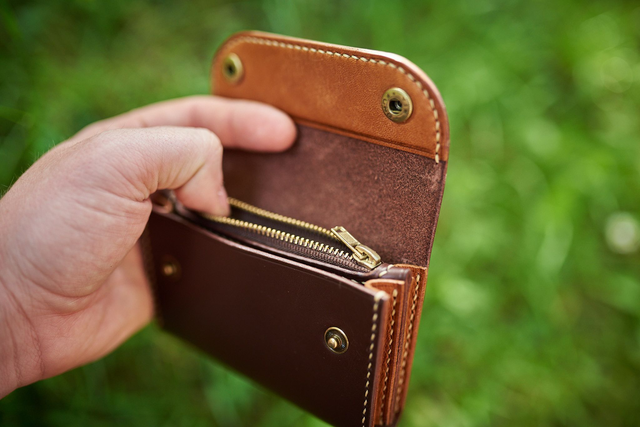 Peňaženka bola ušitá - ako všetky produkty v mojej dielni - ručne so stehom dĺžky 4mm. Zapínanie pomocou stláčacích gombíkov je vo farbe zipsu.